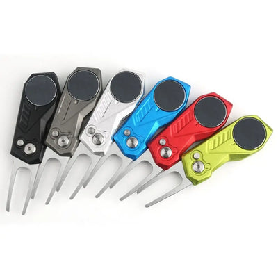 Switchblade Golf Divot Repair Tool Aluminum Alloy Ball Marker Golf Green Fork Foldable Button Mini Golf Divot Tools