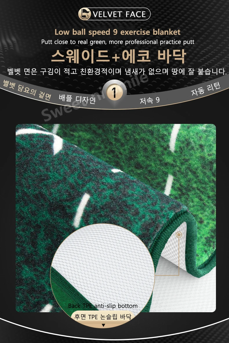 • realistic green carpet design :the putting mat's realistic green carpet design mimics the texture and color of the real golf green, providing a truly golfing experience for practicing.