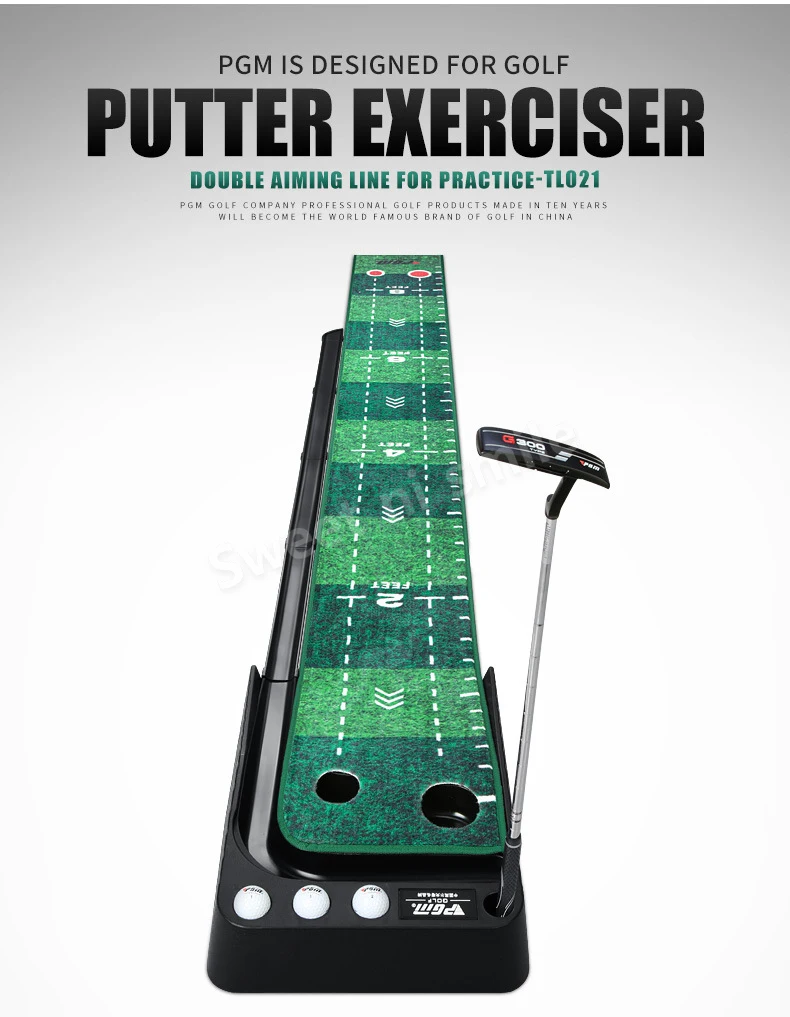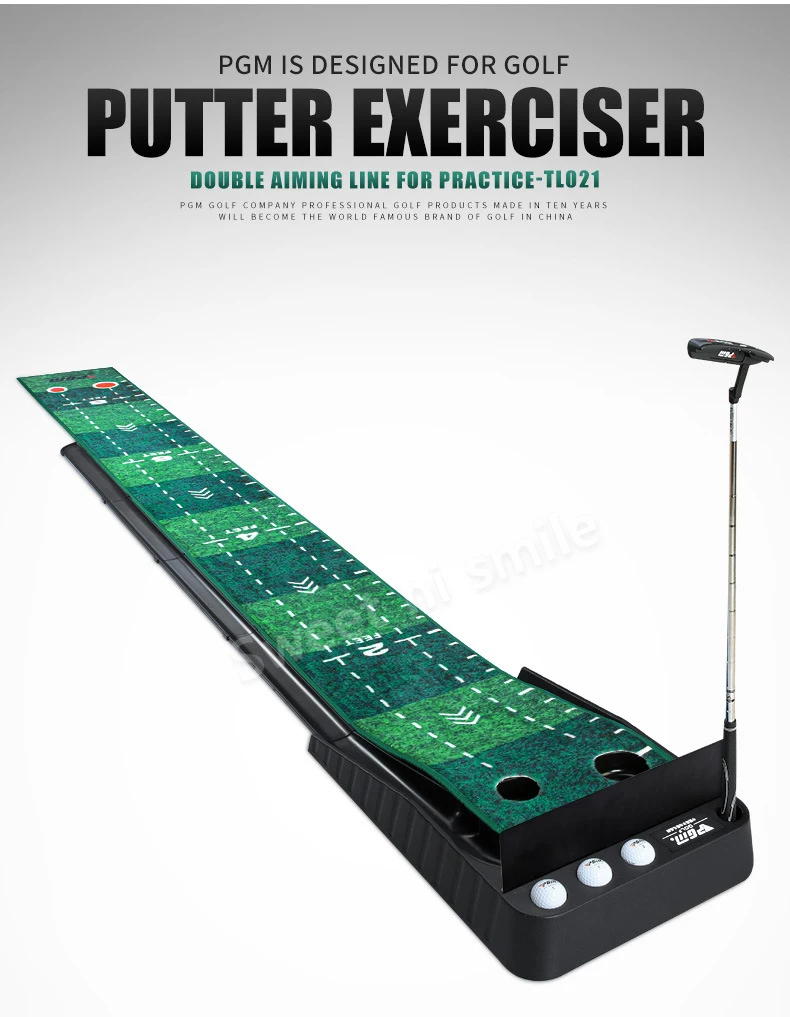 Pgm tl021 3m golf putting mat golf putter trainer green carpet practice set ball return mini golf putting green fairway mat