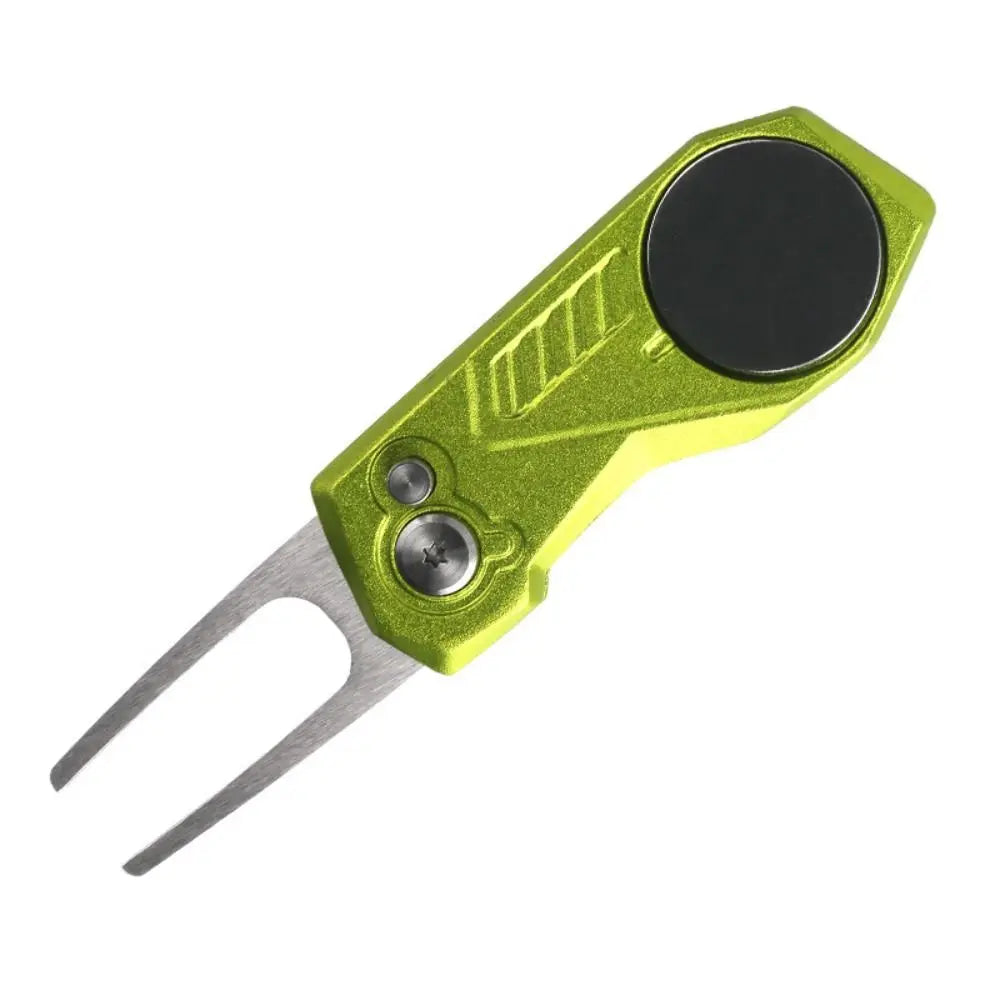 Switchblade Golf Divot Repair Tool Aluminum Alloy Ball Marker Golf Green Fork Foldable Button Mini Golf Divot Tools